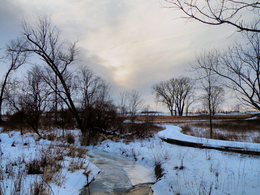 Branches dip their fingers into the icy creek and come up with frosty jewels sparkling like a hundred diamonds.